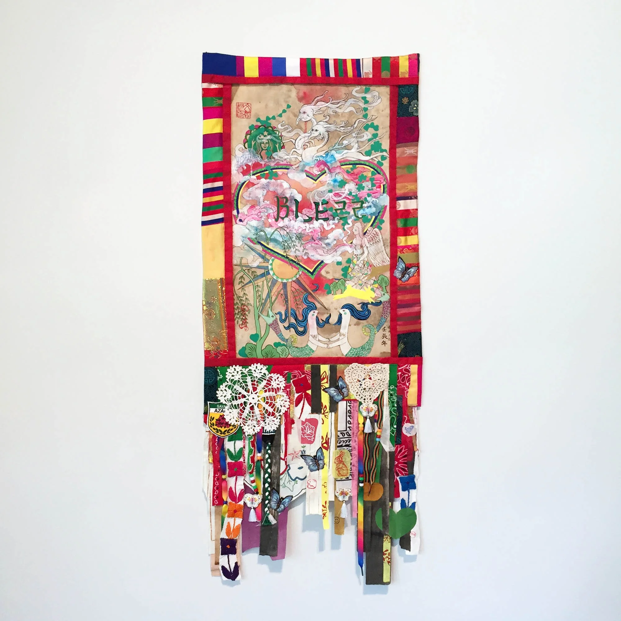 These artists challenge our perceptions of truth and representation. Who gets to be represented in art? Through what lens and before whose gaze? These works question the ways in which different American cultures have been represented historically. They offer new strategies and personal perspectives. Wendy Red Star decolonizes photography, critiquing the way in which Native Americans have been portrayed with romanticized inaccuracy. Jiha Moon collages text from fortune cookies with hand painted landscapes and pop culture references. Sonya Clark deconstructs common materials and their meanings, imbuing textile techniques with color theory, black hair truths, and re-mixed Americana. Roberto Lugo combines painting with ceramics, fusing the motifs of Italian Della Robbia and Classical Greek pottery with contemporary portraits of himself, political activists, and hip-hop icons. April D. Felipe also uses the ceramic medium to discuss her Caribbean heritage, as she builds a surreal patchwork of bold pattern, gestural human form, and delicate texture.